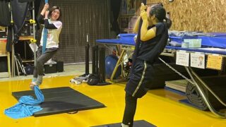 トランポリン、ボルタリング、ジャグリング道具など、スタジオの設備で自由にたっぷり2時間遊べます。